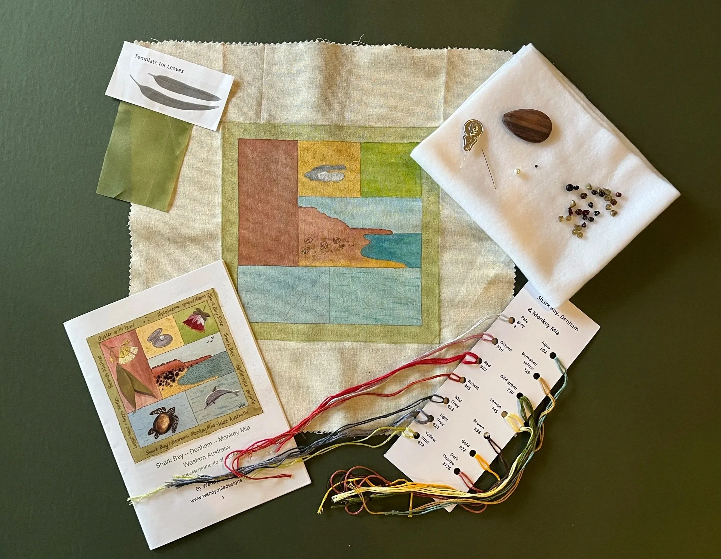 A trip to the Kimberley inspired this series of kits celebrating regions across Western Australia. Each pack includes simple instructions, hand painted fabric, threads and embellishments. They are light weight and easy to post making for a great gift. If you choose one , I hope you delight in stitching it as much as I loved creating it.